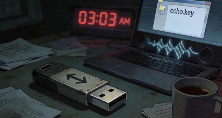 what happens if you find a mysterious USB drive, horror stories about old technology, time fracture supernatural tales, reversed audio ghost stories, Elias Vance acoustics engineer legend, 3:03 AM paranormal activity, echo key file urban myth, haunted museum basement stories, obsolete technology horror, temporal resonance fiction