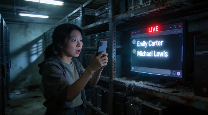 The chat listed six participants: @OfflineShadow, @Null_mother, @404_dad, and three handles he recognized—his high-school girlfriend who died in a car crash, his grandmother who passed the week he started college, and a kid from primary school who vanished during a field trip. Their messages overlapped: “Turn around,” “Don’t look at the racks,” “He’s behind the tape.” Evan spun; only darkness swirled. The countdown hit 00:03:00. He told the camera he was leaving, but the exit door had disappeared, replaced by an endless corridor of servers whose fans now whispered his name in binary rhythm.
