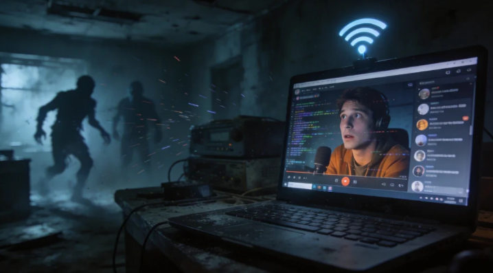 The live feed showed both Rowans—one terrified in the foreground, the other calm beside him. Chat exploded: “DUPLICATE!” “Which one is real?” Rowan backed away; the doppelgänger advanced, eyes glowing the same icy blue as the router LEDs. It whispered through the phone speaker: “Bandwidth is thin; bodies are thick. Trade you places so I can feel.”