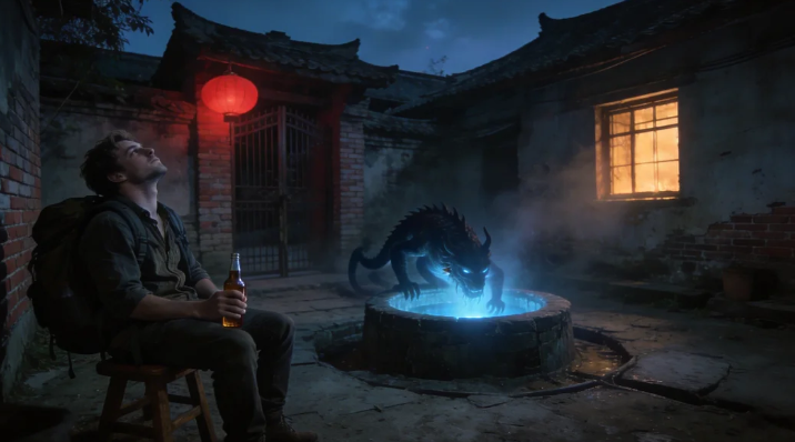 I grab my phone flashlight, step into the courtyard. The beam cuts through the mist and lands on the well—lid half open, sliding slow, like someone’s pushing from below. My stomach flips, but the European in me needs content, right? I film it, whisper dumb commentary: “Ghost vlog, day one, hashtag hauntedChina.”