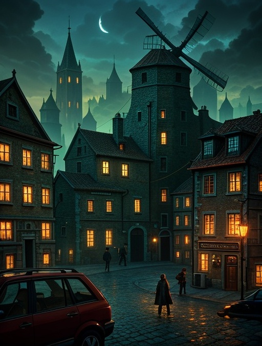 In the city's forgotten corner, where the neon lights refuse to shine, stood the Old Mill. Its walls were weathered, and the windows blackened by time, a monument to a forgotten era. The locals avoided it, for it was said that the mill was haunted by the restless souls of those who had perished there.
