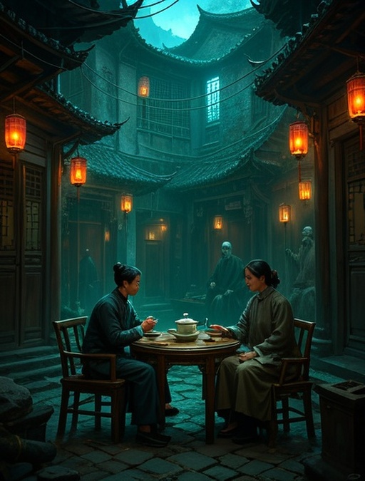 Inside, the air was thick with the scent of aged oolong and sandalwood incense. A single lantern cast flickering shadows across the room, revealing a handful of patrons, each huddled over their steaming teacups. Among them was a young foreigner, David, who had come to study Chinese folklore. He had heard rumors of the teahouse and its spectral patrons and couldn't resist the allure of a good ghost story.