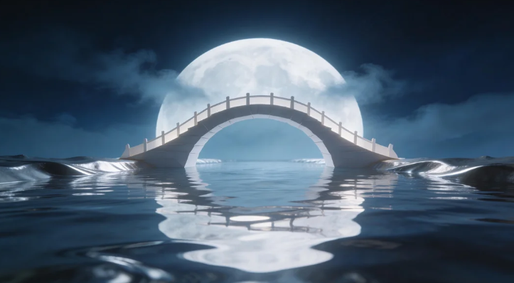At 1:00 a.m. sharp, fog rose from the water and folded into origami clouds. Where a stone bridge had stood that afternoon, a new span now arched—constructed entirely from rice-paper ingots folded like gold nuggets used in ancestral offerings. Every step released the scent of burnt hell-money. Underneath, the canal reflected not the city, but a full moon printed on crinkled paper, its cratered face hand-painted with the character 冥 (underworld) instead of the usual 月 (moon).